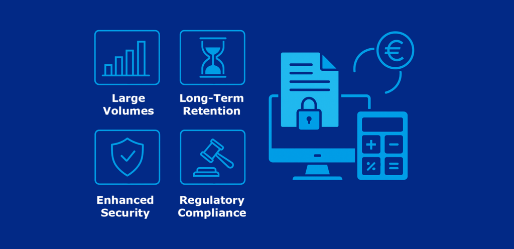 Massive volumes: Ability to rapidly archive billions of banking records within a single system;