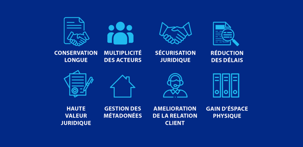 The Electronic Archiving System (EAS) tailored for the real estate sector enables the management and security of all documents related to real estate properties, transactions, and relationships with various stakeholders. It ensures the probative preservation of documents and facilitates their consultation throughout their lifecycle.