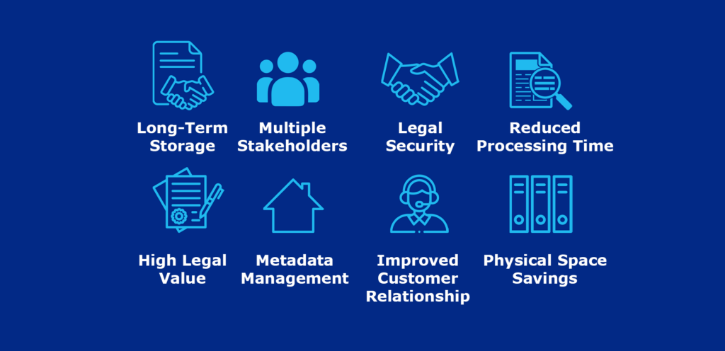 High legal value documents: Secure preservation of contracts, notarized deeds, and other probative documents;